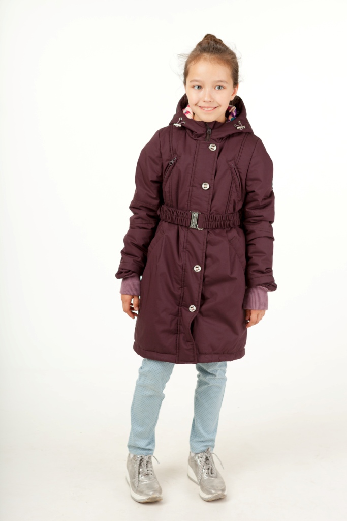 Парка для девочки однотонная с поясом.