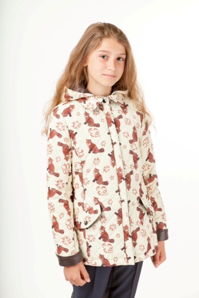 Куртка для девочки с капюшоном и стильным принтом в виде лисичек. Боковые карманы с клапанами.