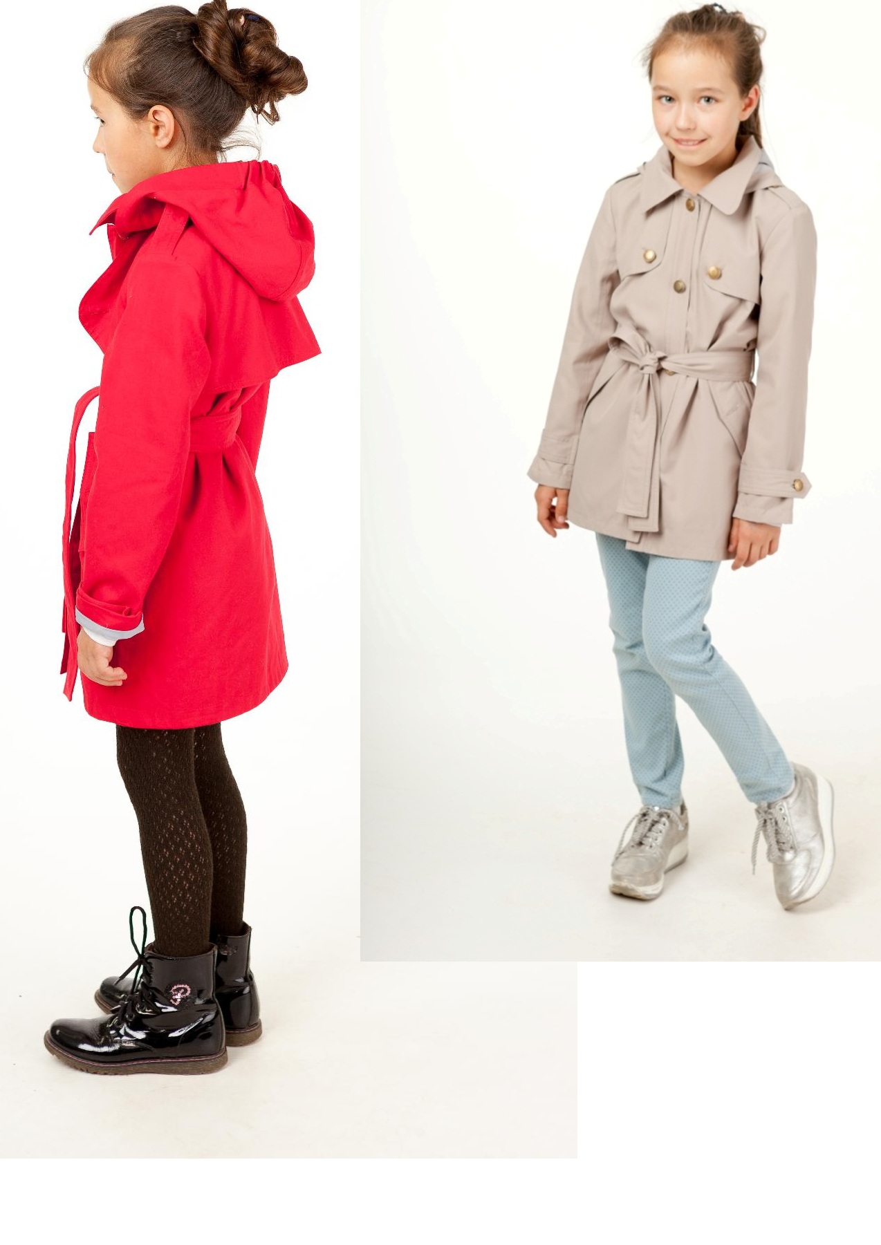 Тренч с поясом однотонный для девочки.