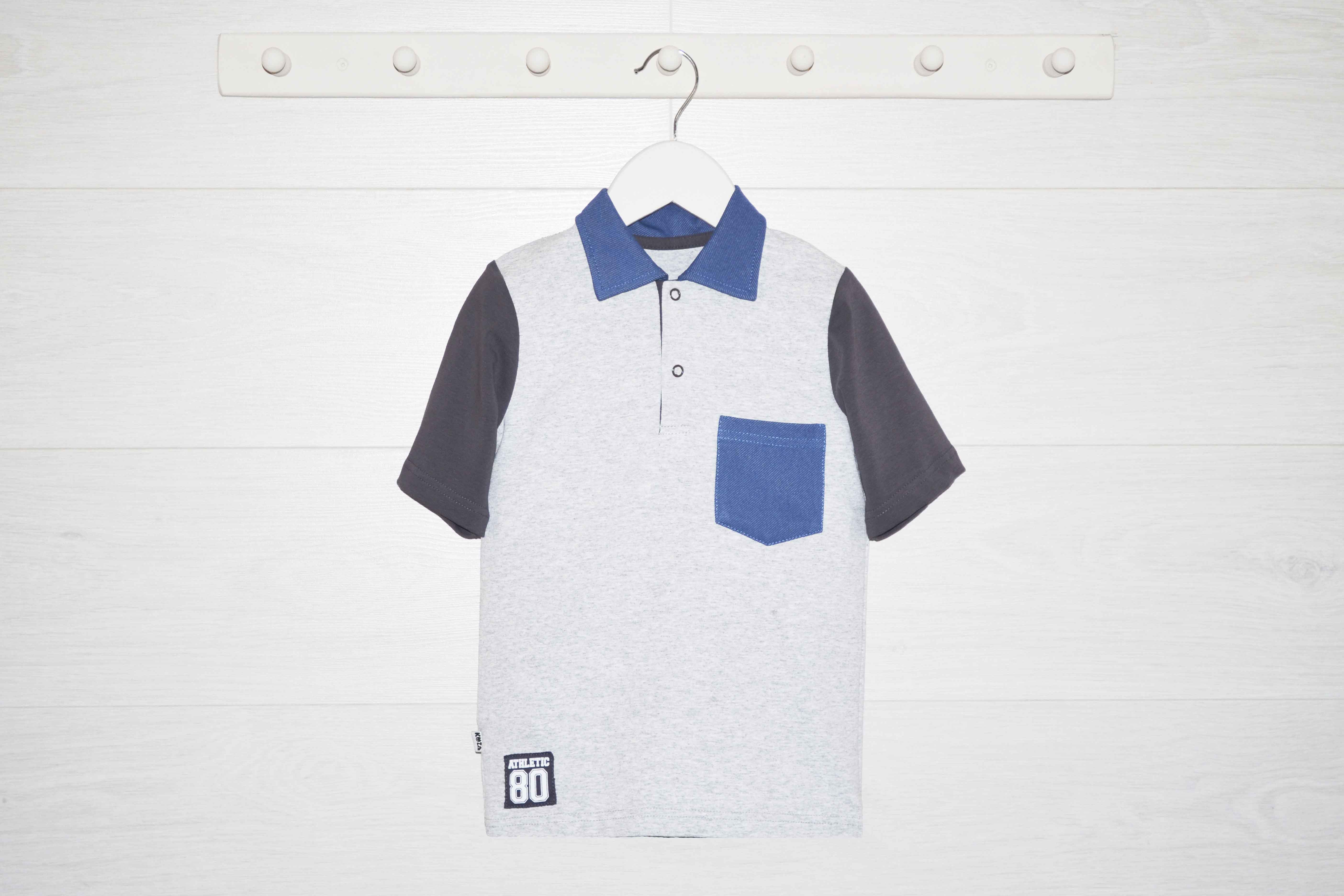 Джемпер с коротким рукавом. Планка с застежкой на кнопках, по переду карманчик и настрочная аппликация.