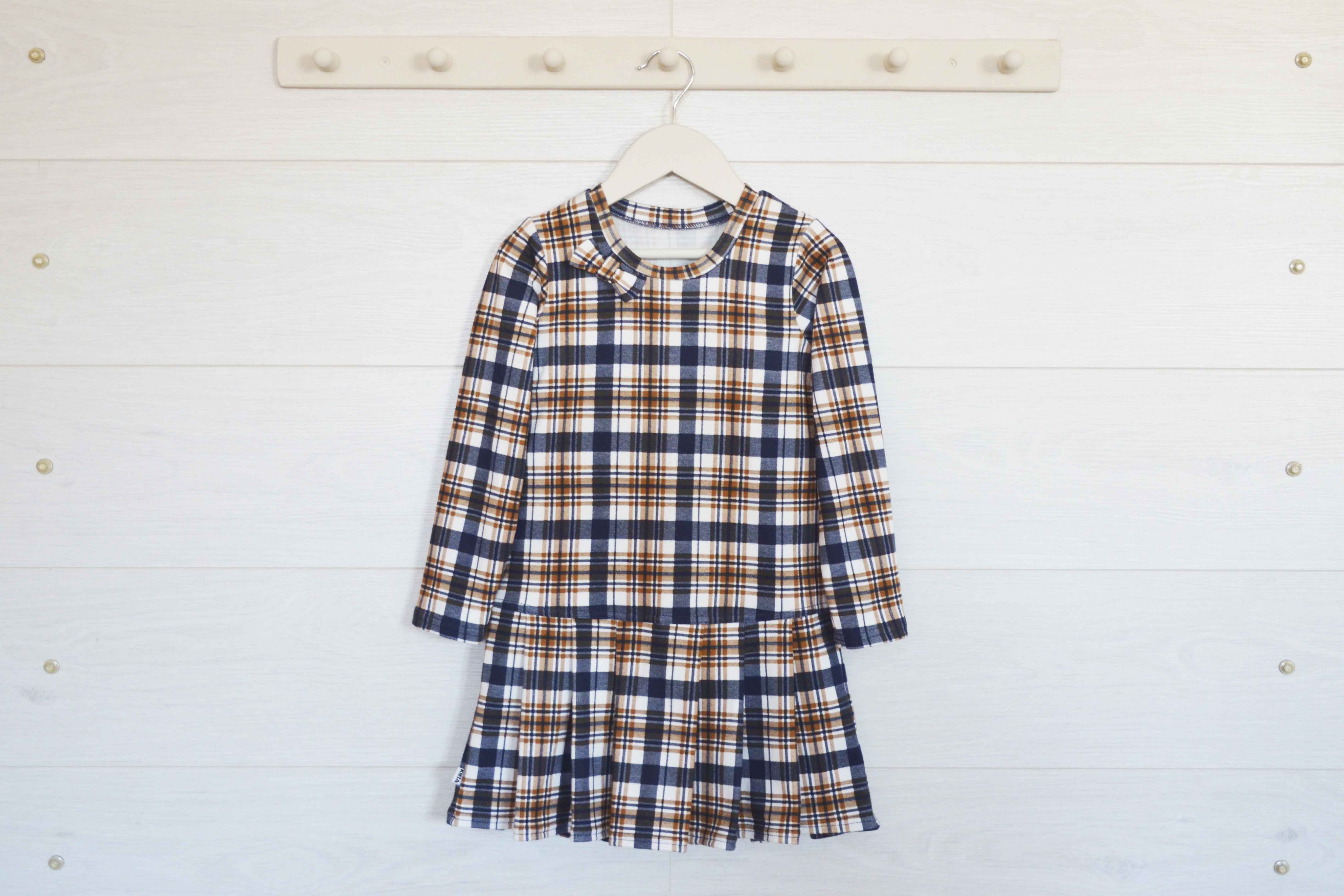 Платье с длинным рукавом. Декоративный бантик на манжете горловинки. Юбочка в складку.