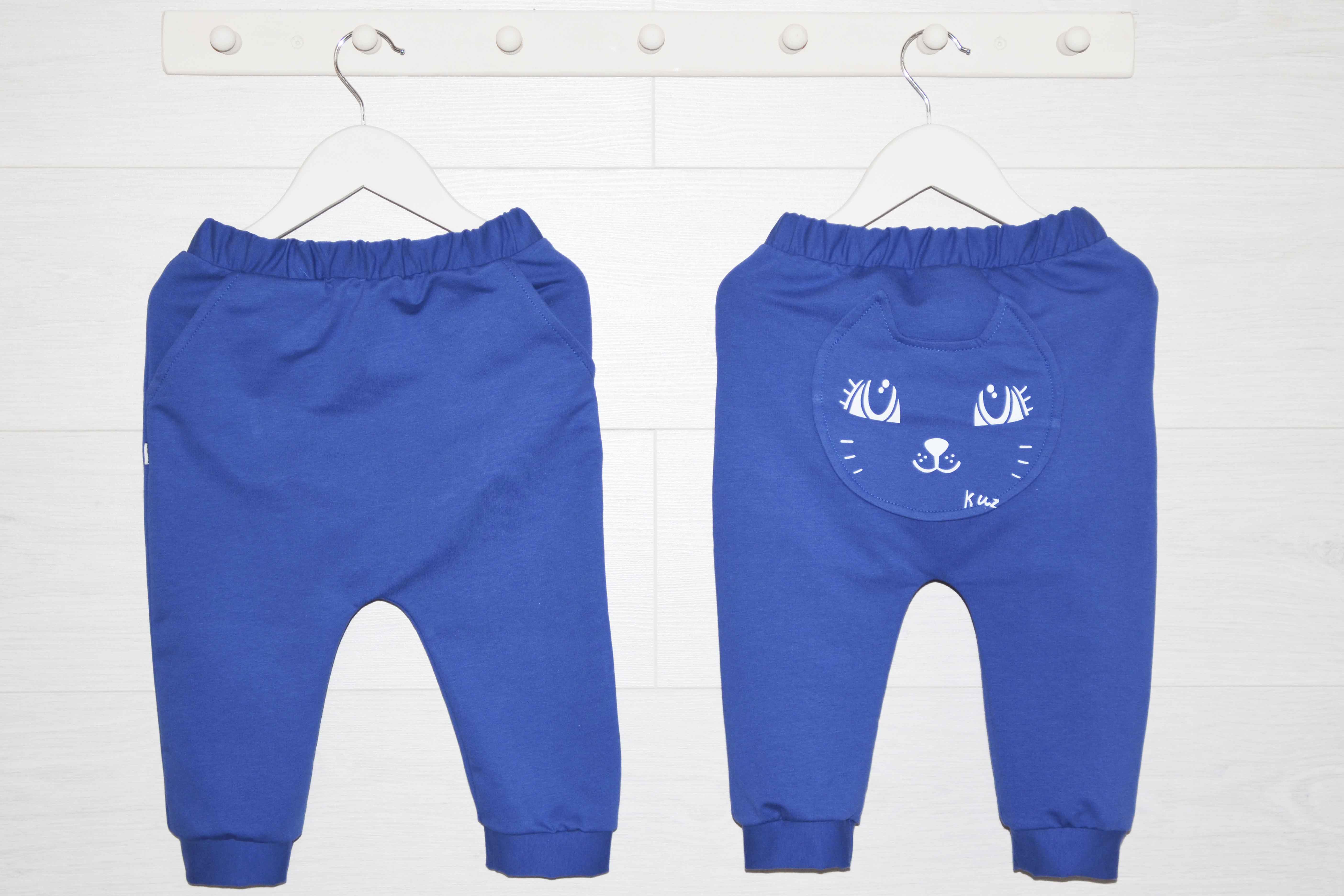 Брючки на манжетах с двумя боковыми карманами и карманчиком сзади.