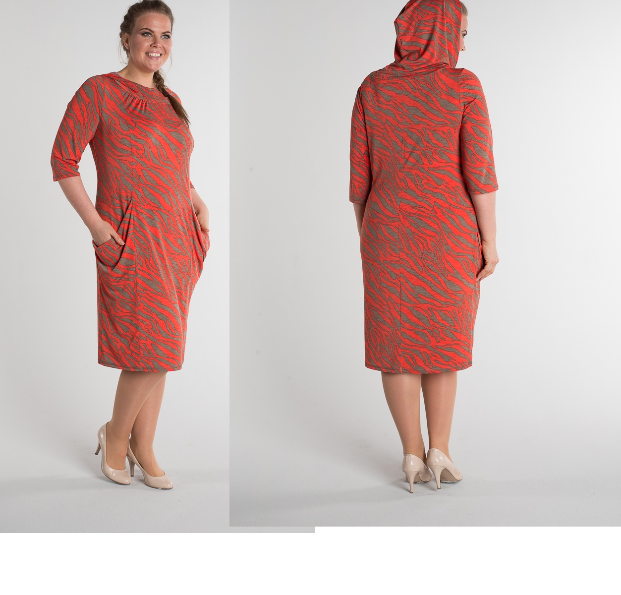 Стильное оригинальное платье с капюшоном, драпированные глубокие карманы придают платью спортивно-городской стиль.