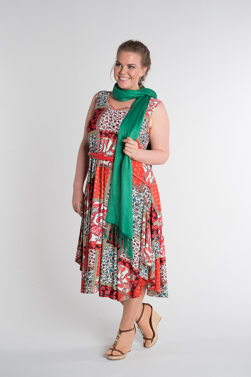 Легкий летний сарафан, с расклешенным фигурным низом, струится по фигуре.