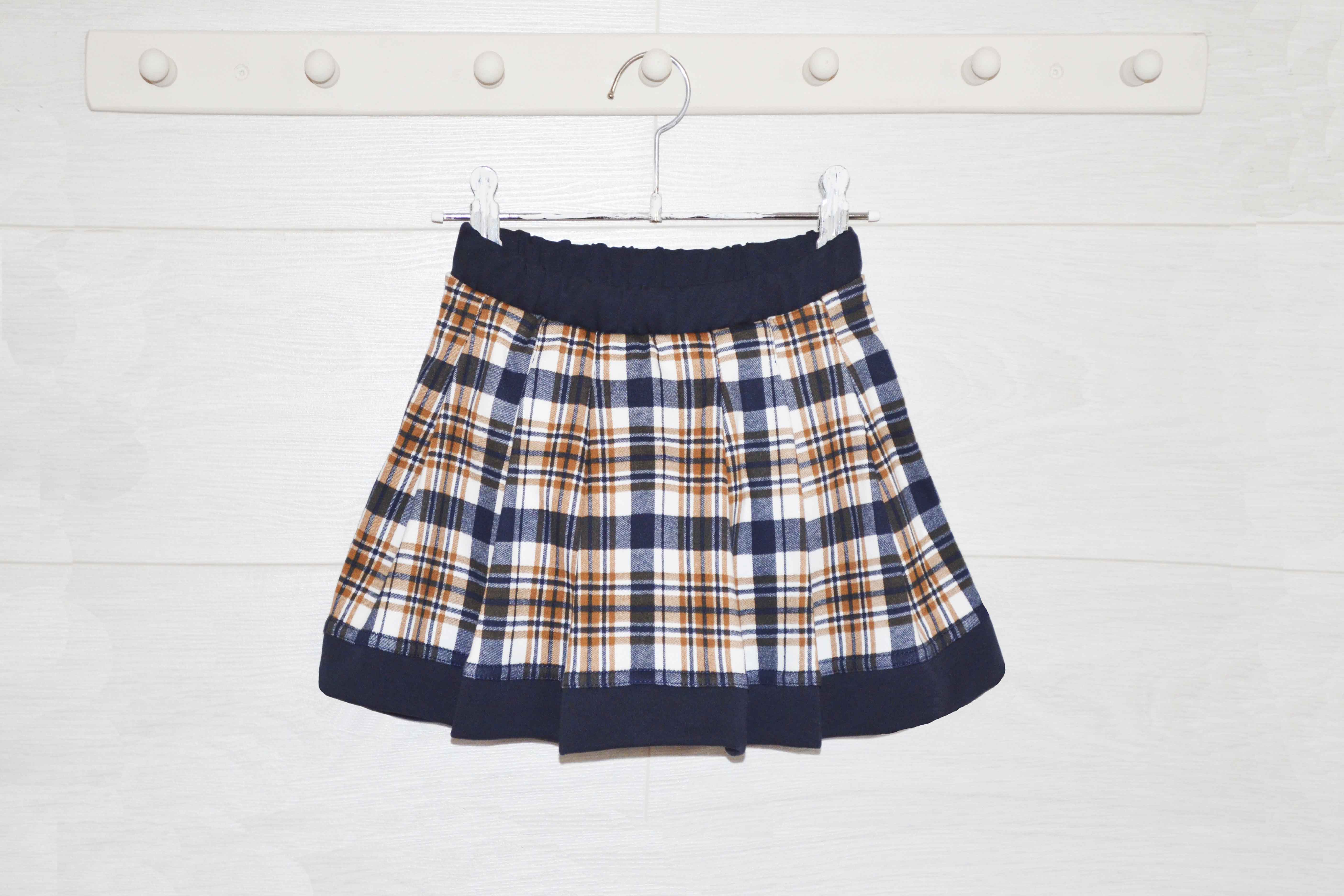 Юбка короткая, со складками, трикотажный пояс на резинке, декоративная аппликация.