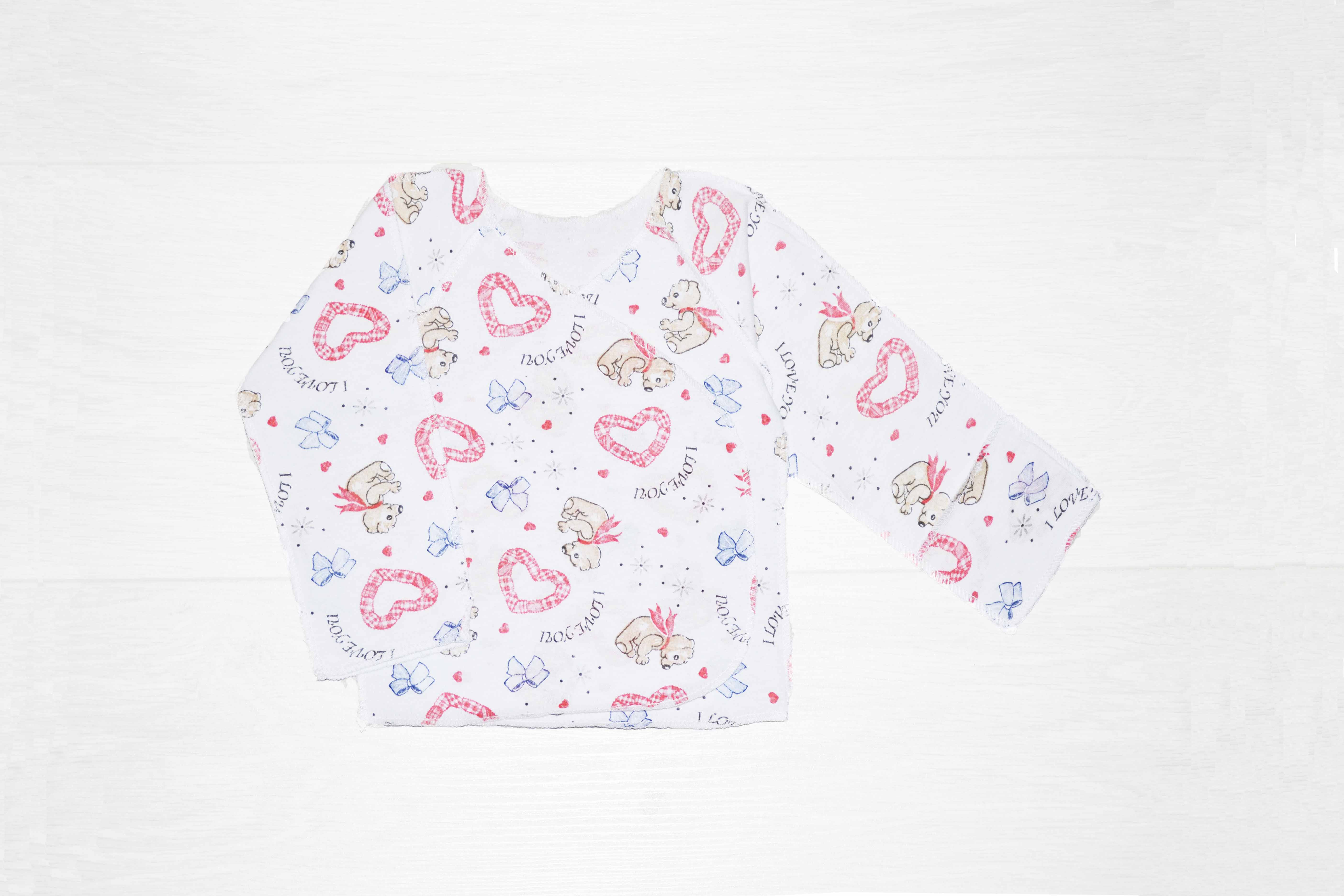 Распашонка с открытыми ручками. На рукавчике манжет, который при отворачивании, закрывает ручку ребенка.