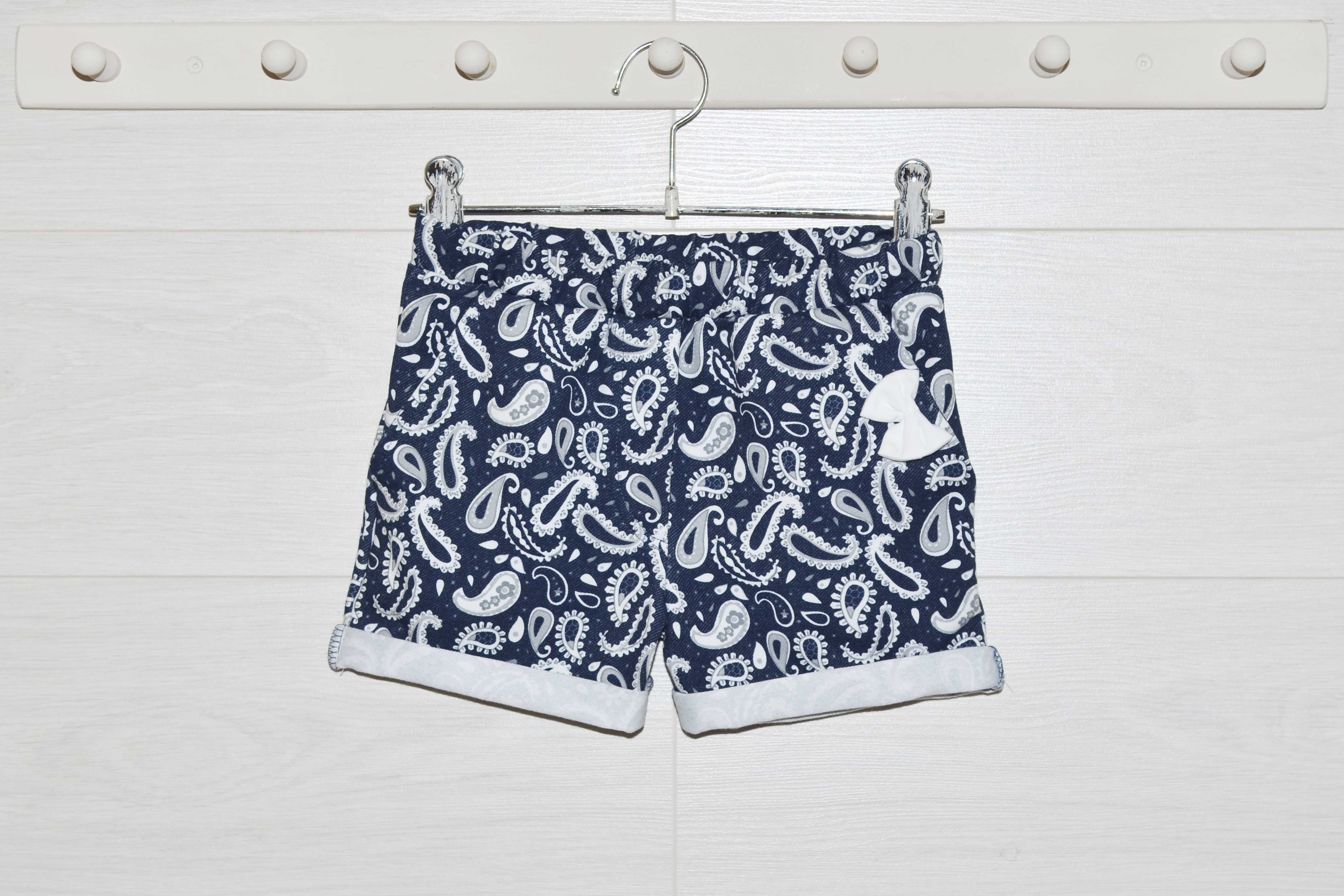 Шорты короткие с отворотами, с двумя карманами, с декоративным бантиком.