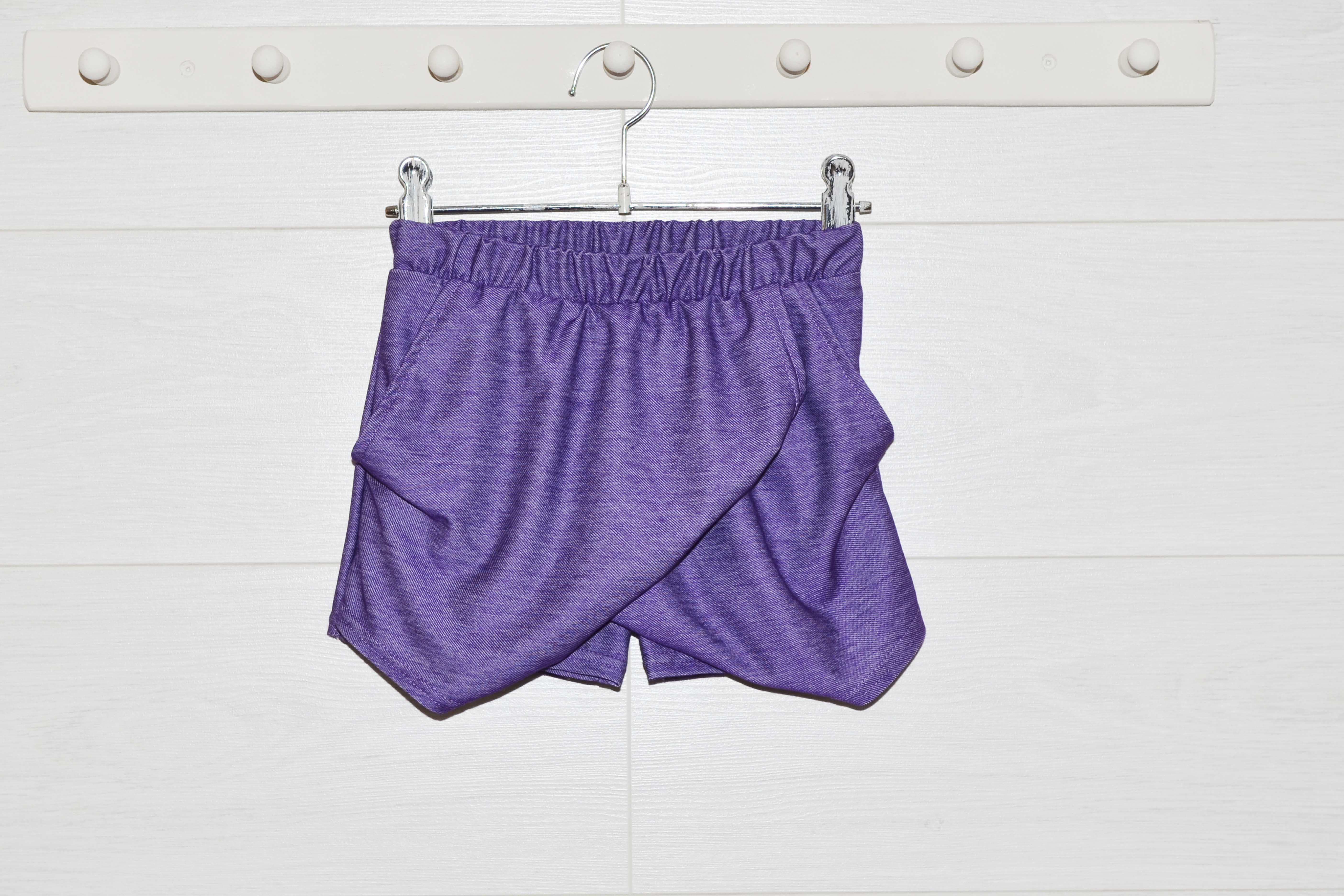 Шорты короткие, спереди модный запах, с двумя карманами.