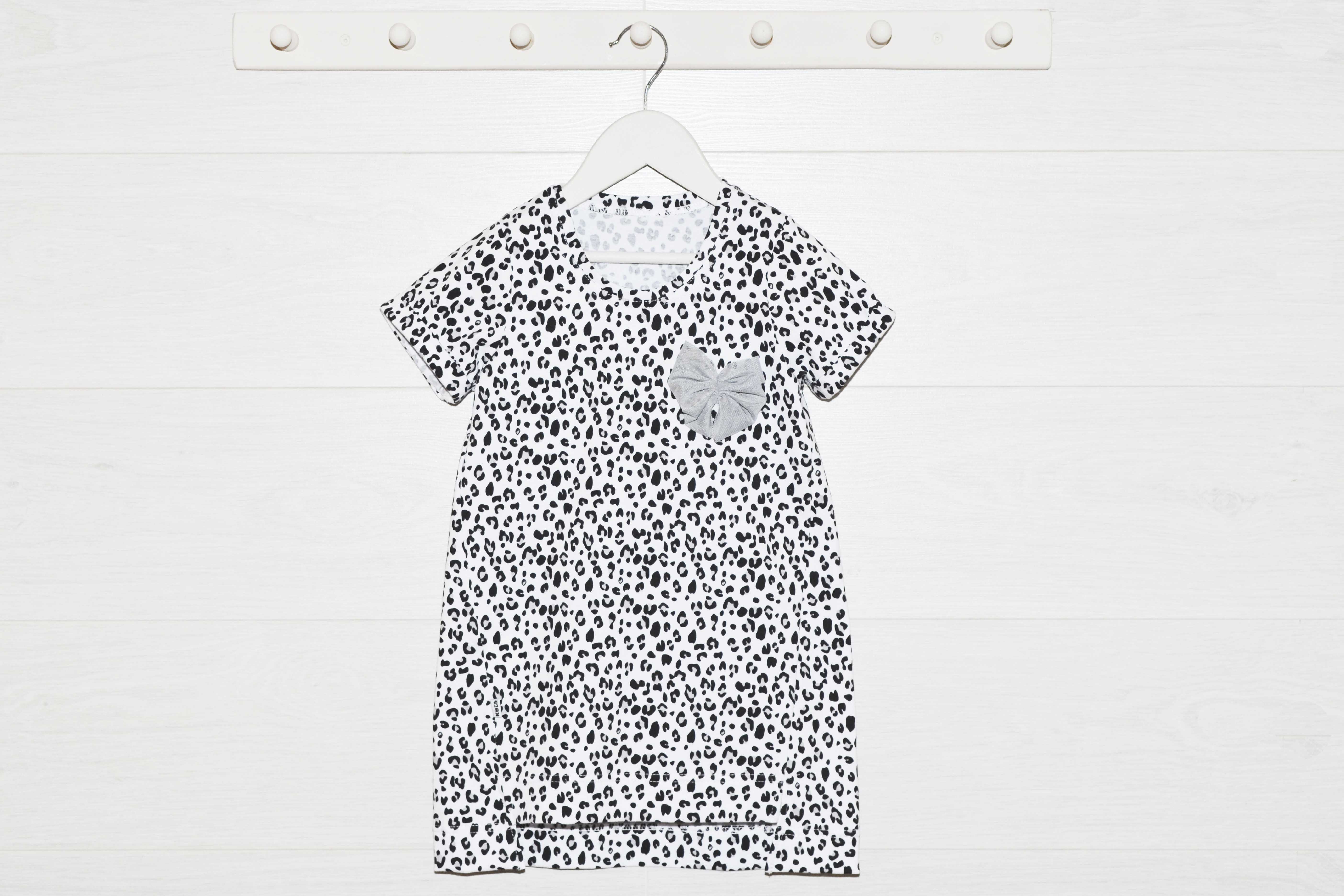 Платье с коротким рукавом, с декоративными подрезами по переду. Перед укорочен. На груди декоративный бантик.