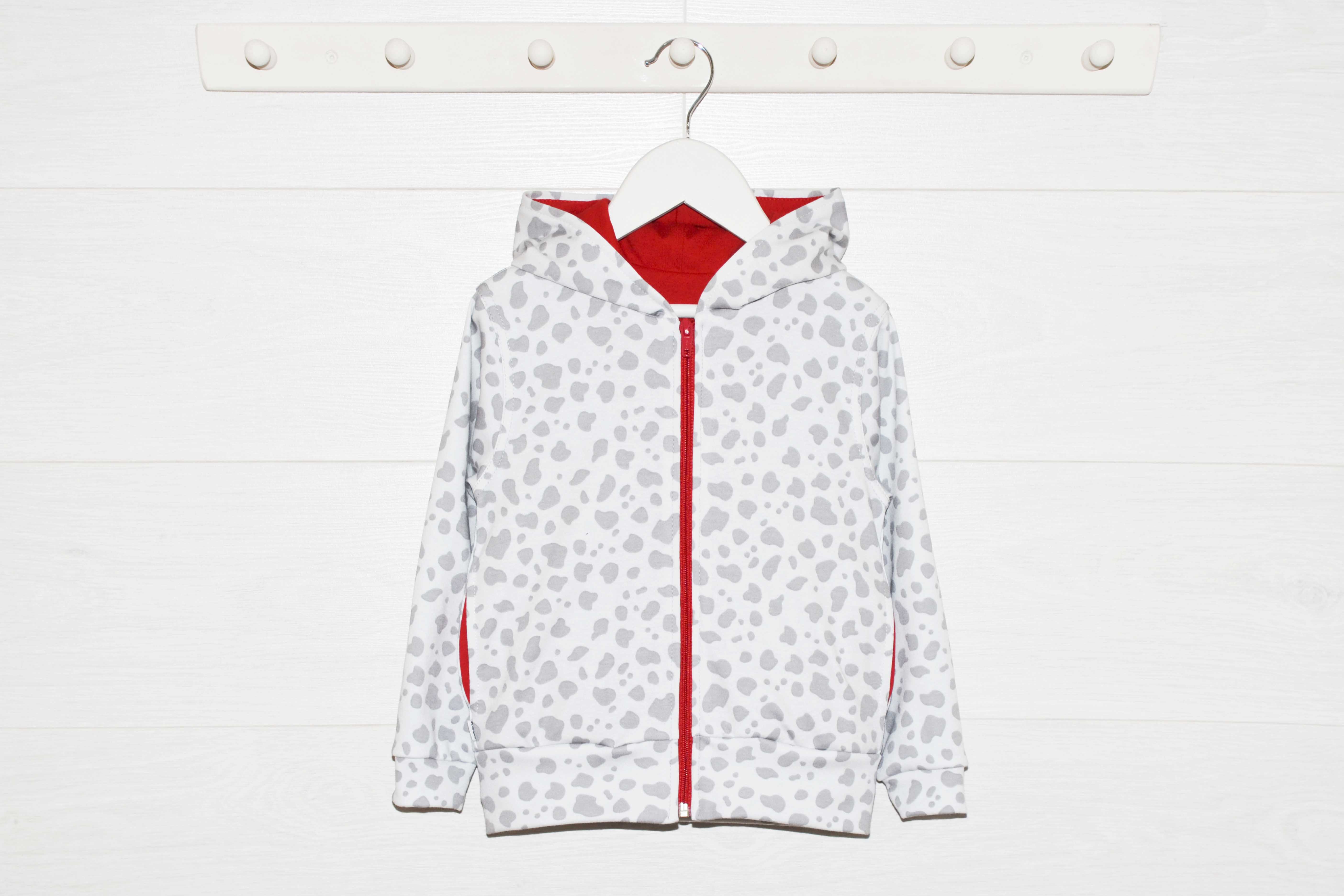 Джемпер с длинным рукавом. Застежка по переду на молнии. Капюшон на подкладке из х/б кулирки. На капюшоне милые ушки.