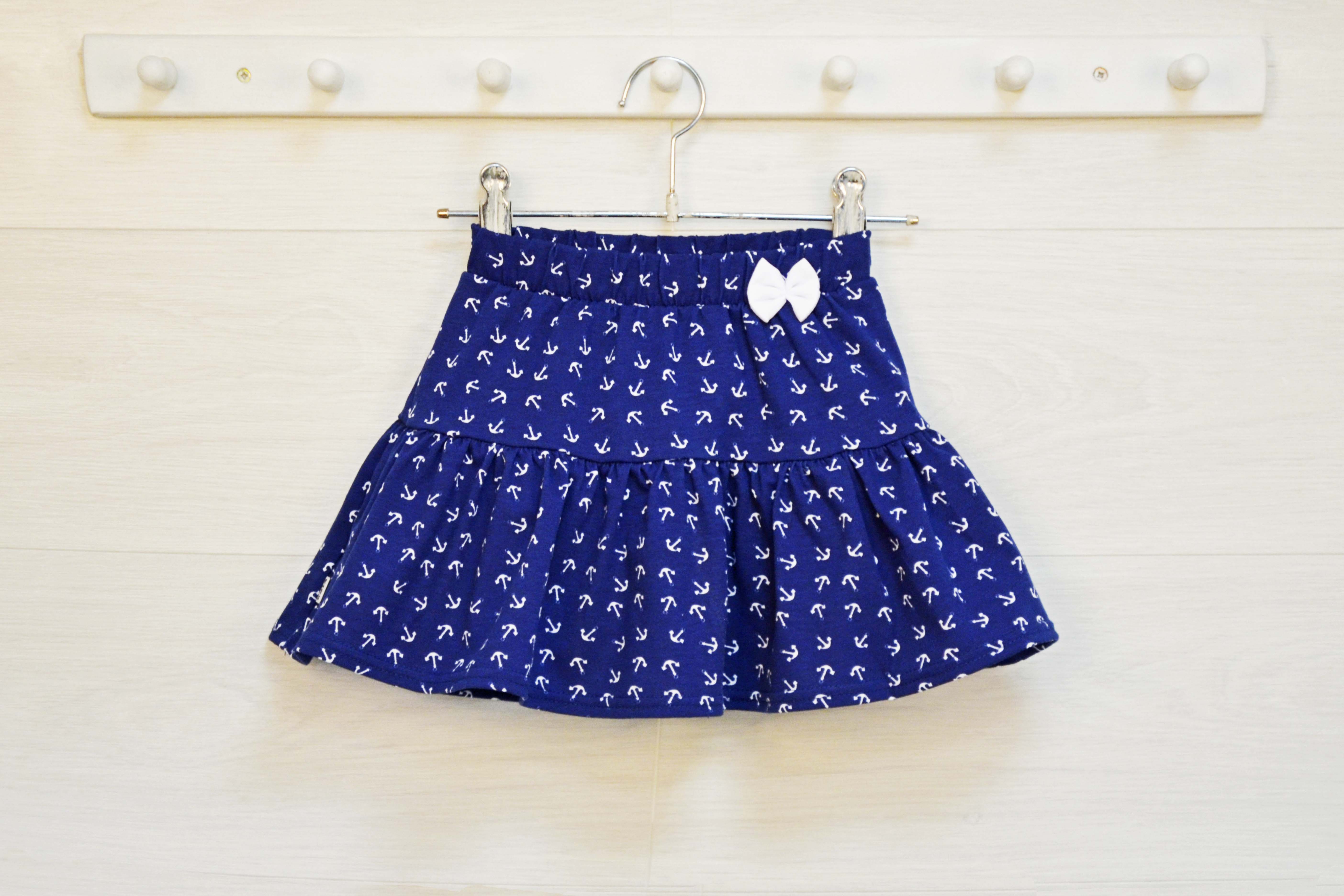 Юбка из двух воланов со сборкой, пояс на резинке, спереди декоративный бантик.