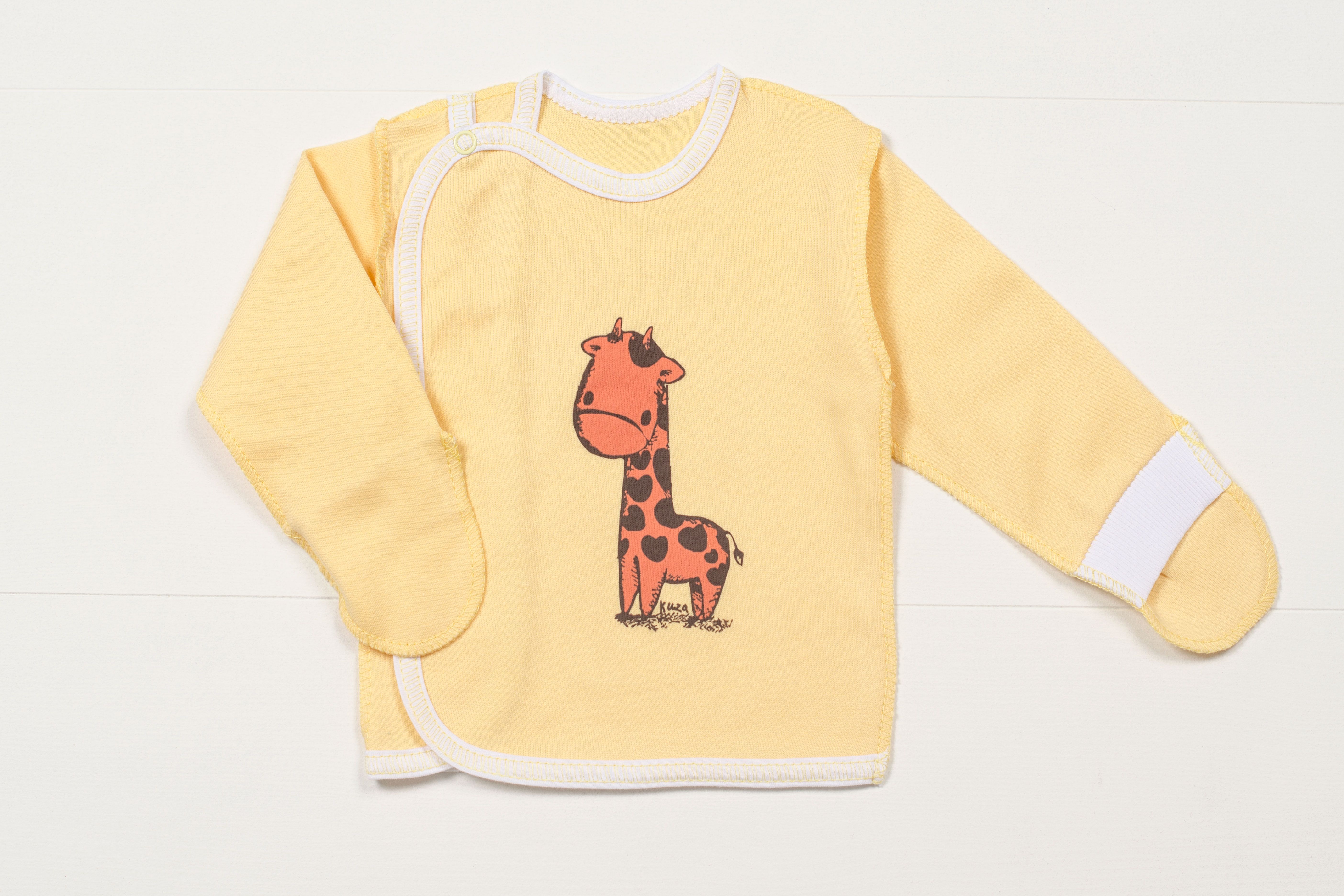 Распашонка с закрытыми ручками на кнопочке.Принт.