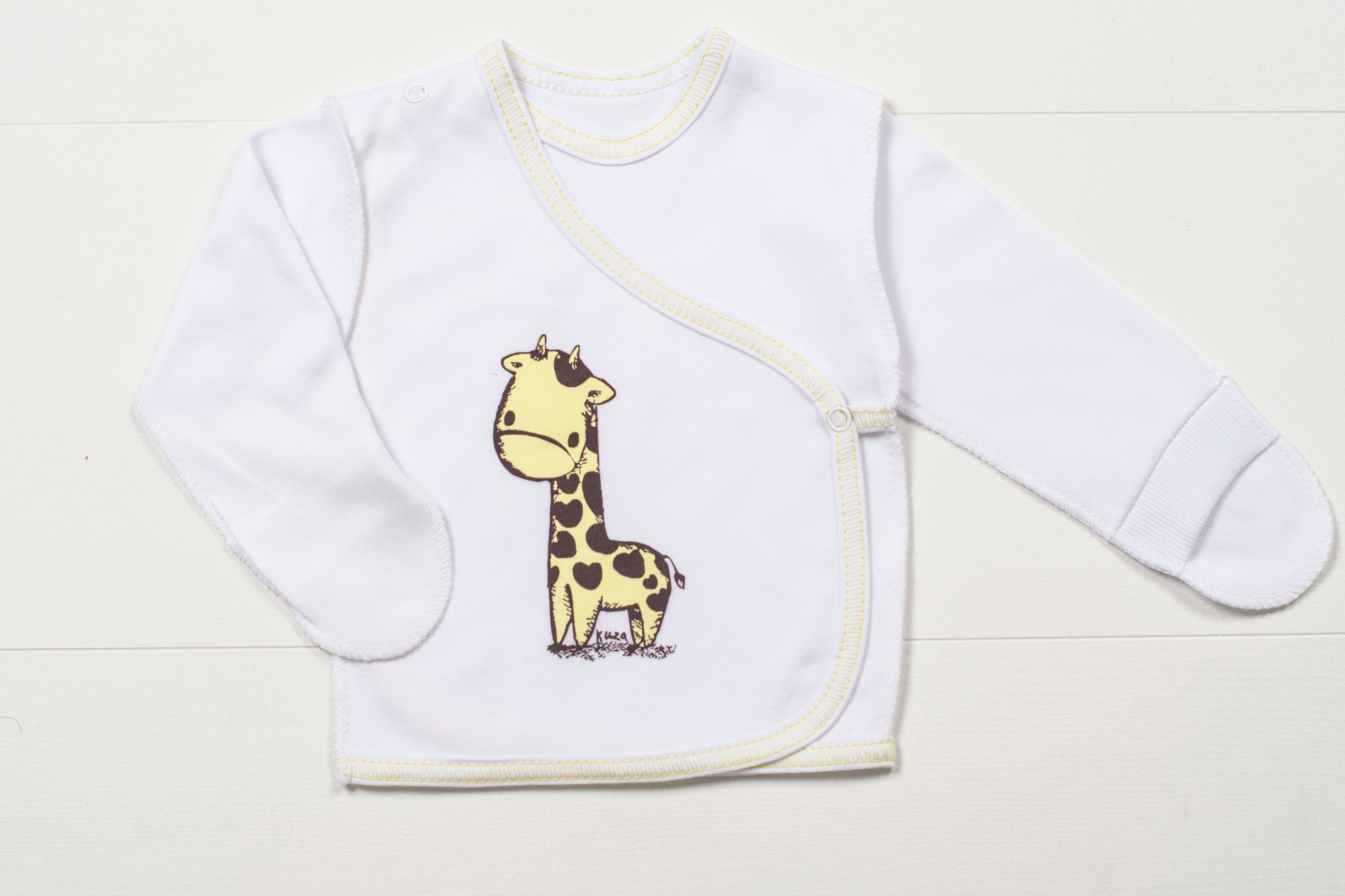 Распашонка с закрытыми ручками, на кнопочке. Принт.