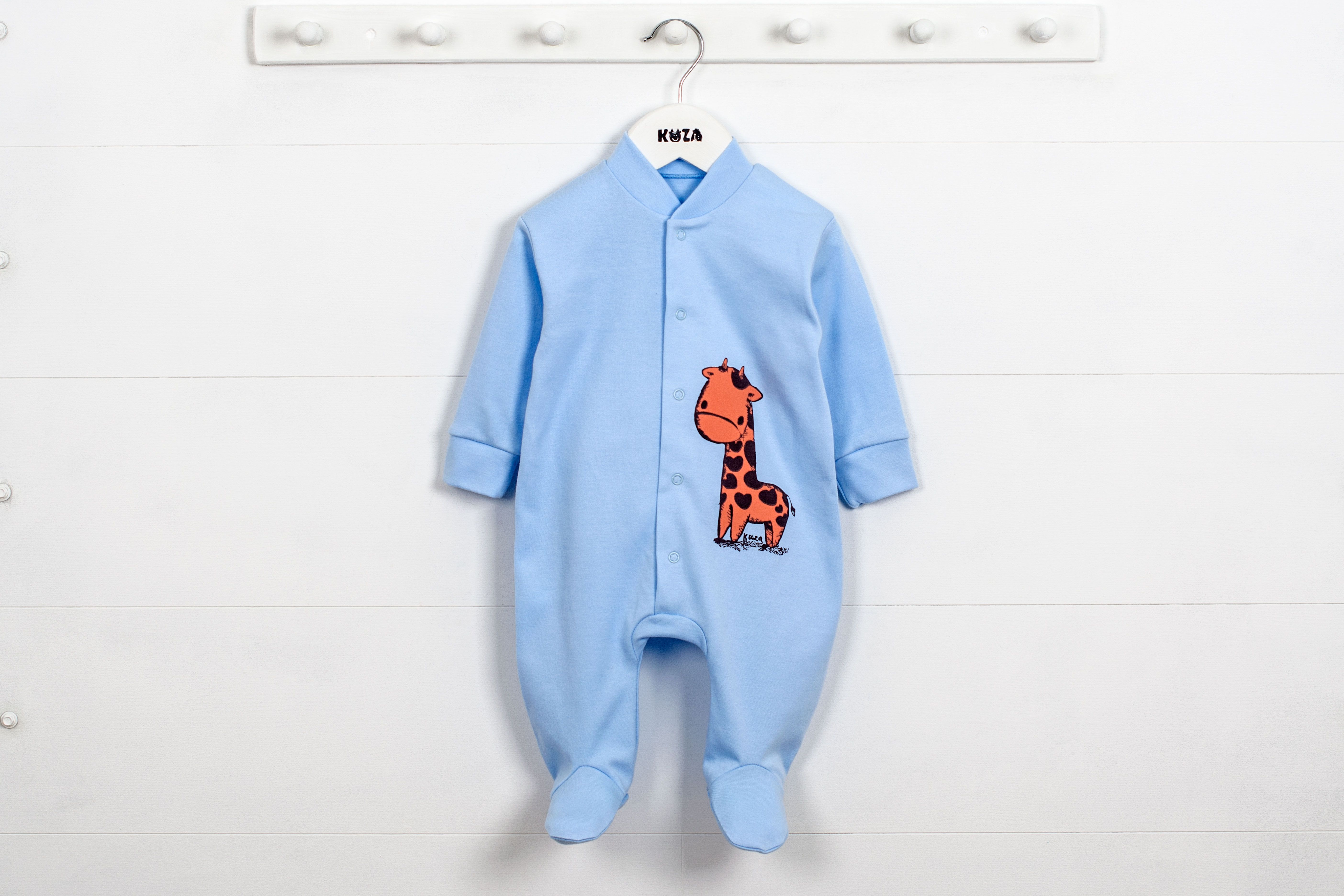 Комбинезон с длинным рукавом и закрытыми ножками. По переду застежка на кнопки. Принт.