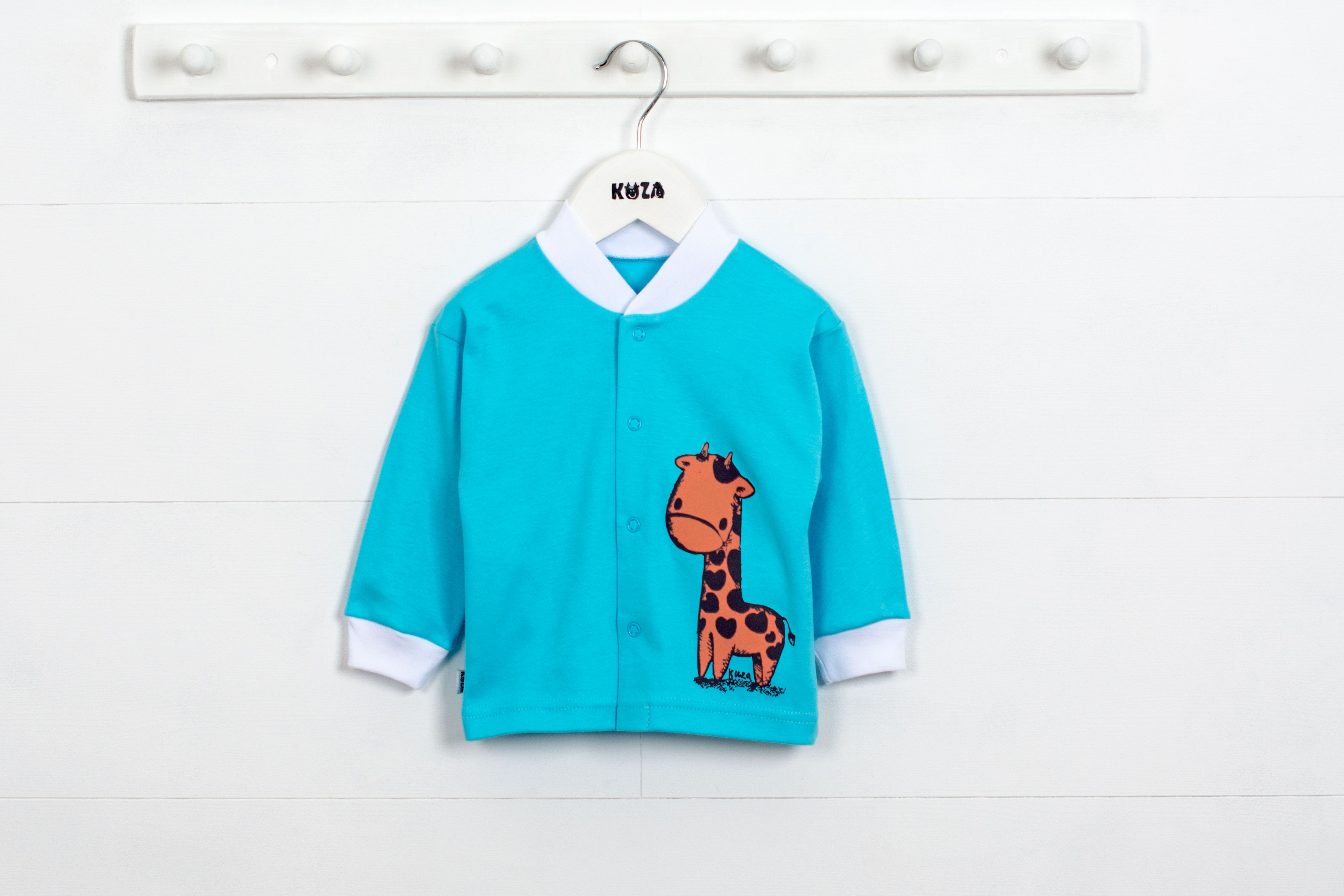 Кофточка с длинным рукавом на манжете, застежка на кнопки. Принт.