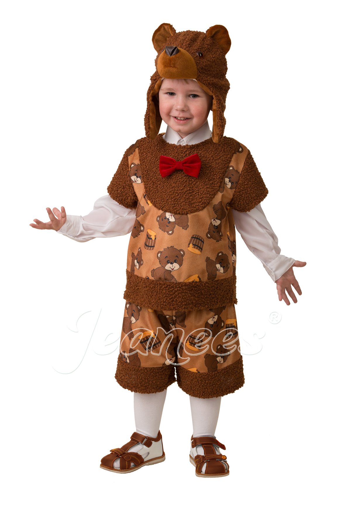 В комплект входит: широкие шорт и жилетки, на которых изображены веселые мишки и много бочек с медом., маска