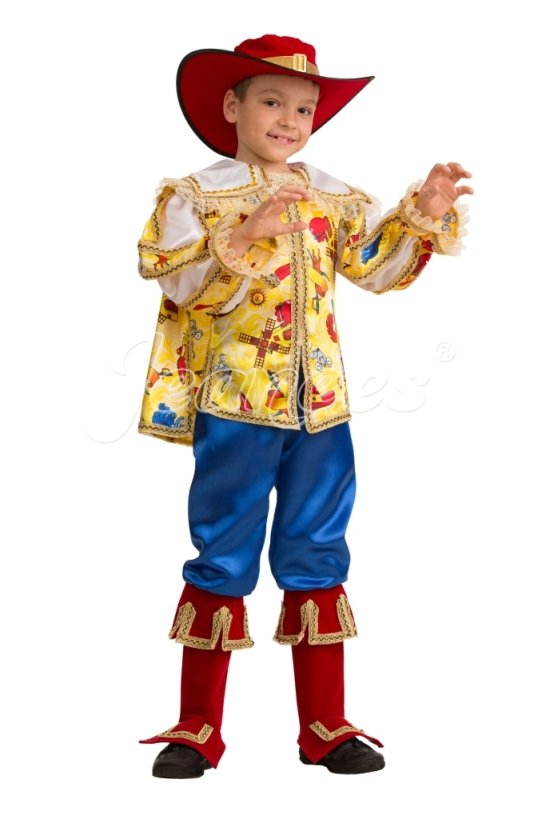 В комплект входит: камзол с палащом, брюки с сапогами, шляпа.