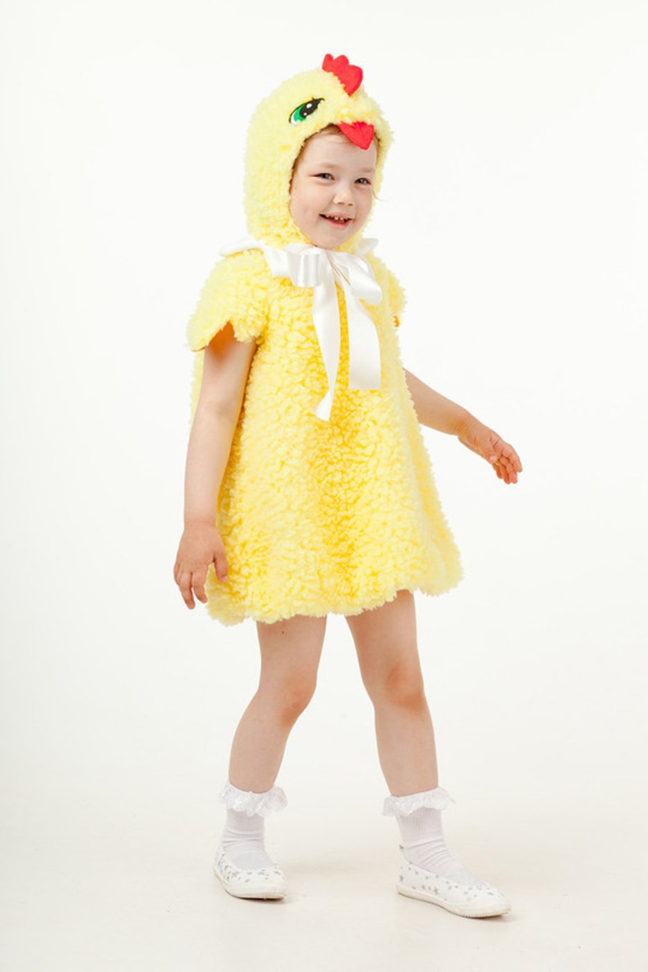 и капюшоном в виде головы курочки.