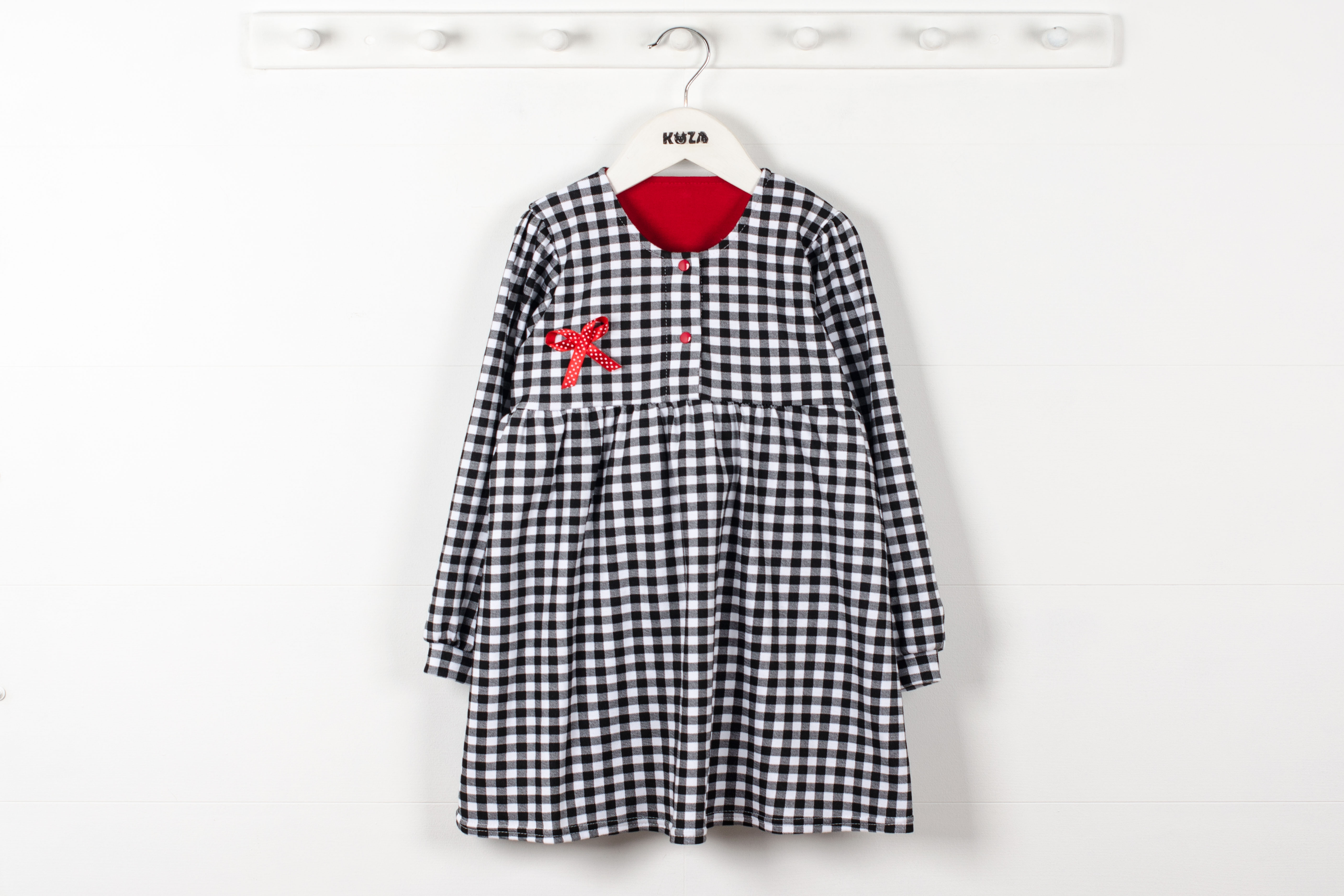 Платье с длинным рукавом. По переду планочка на кнопочках. Рукав со сборкой, на манжетике.