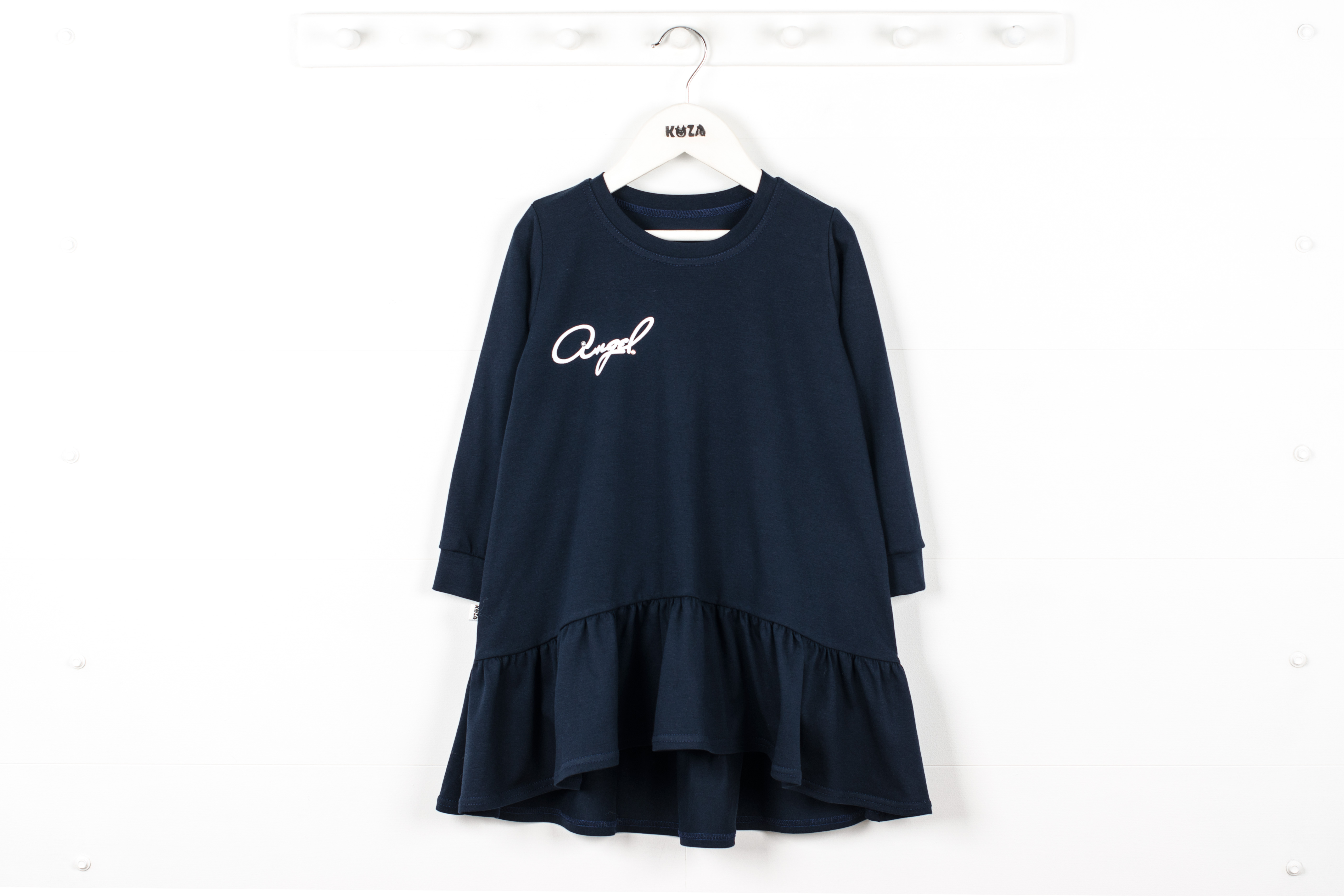 Платье с длинным рукавом. По переду и спинке печать. По низу платья волан.