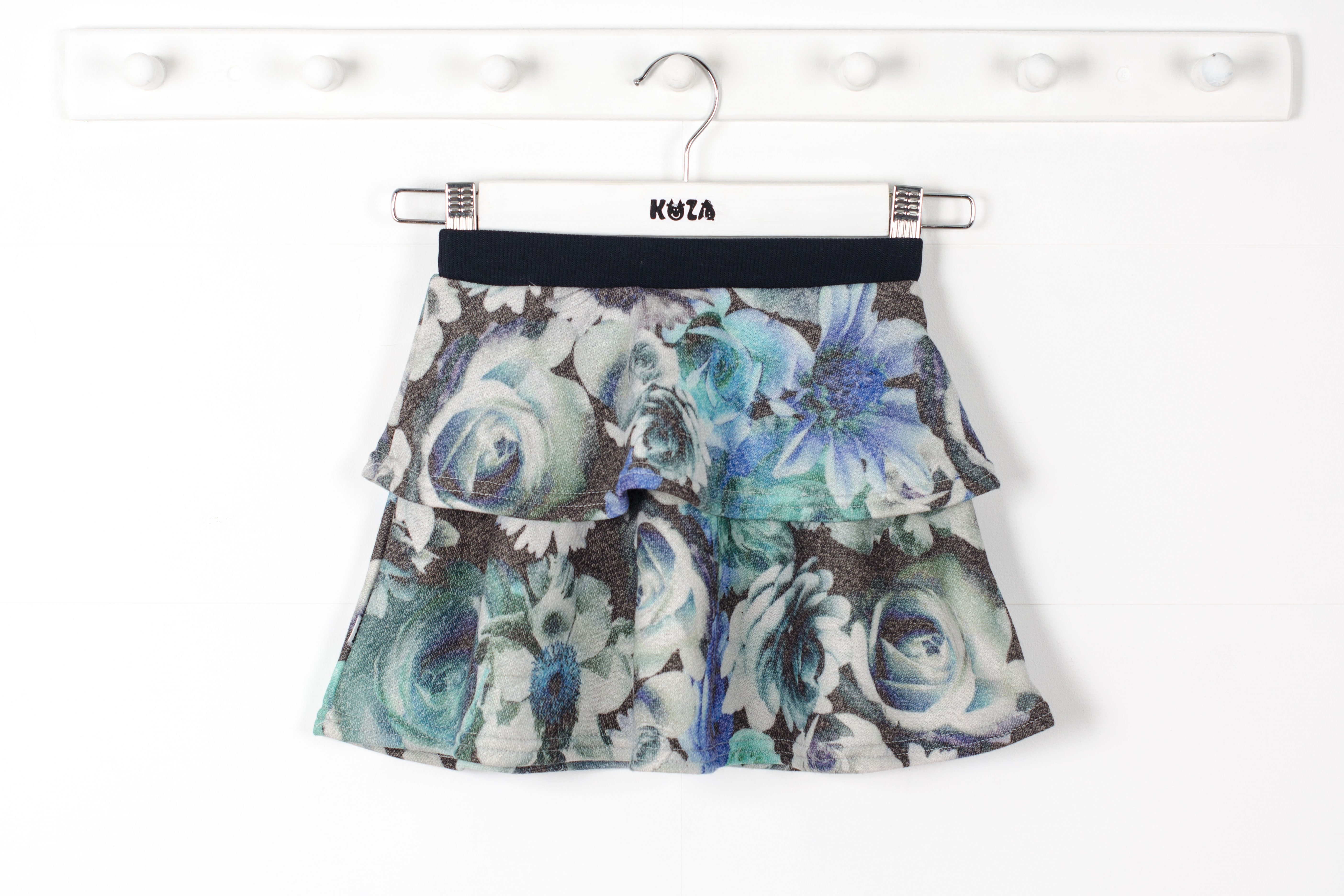 Юбка короткая, полусолнце, из двух воланов. Пояс юбки эластичный из кашкорсе.