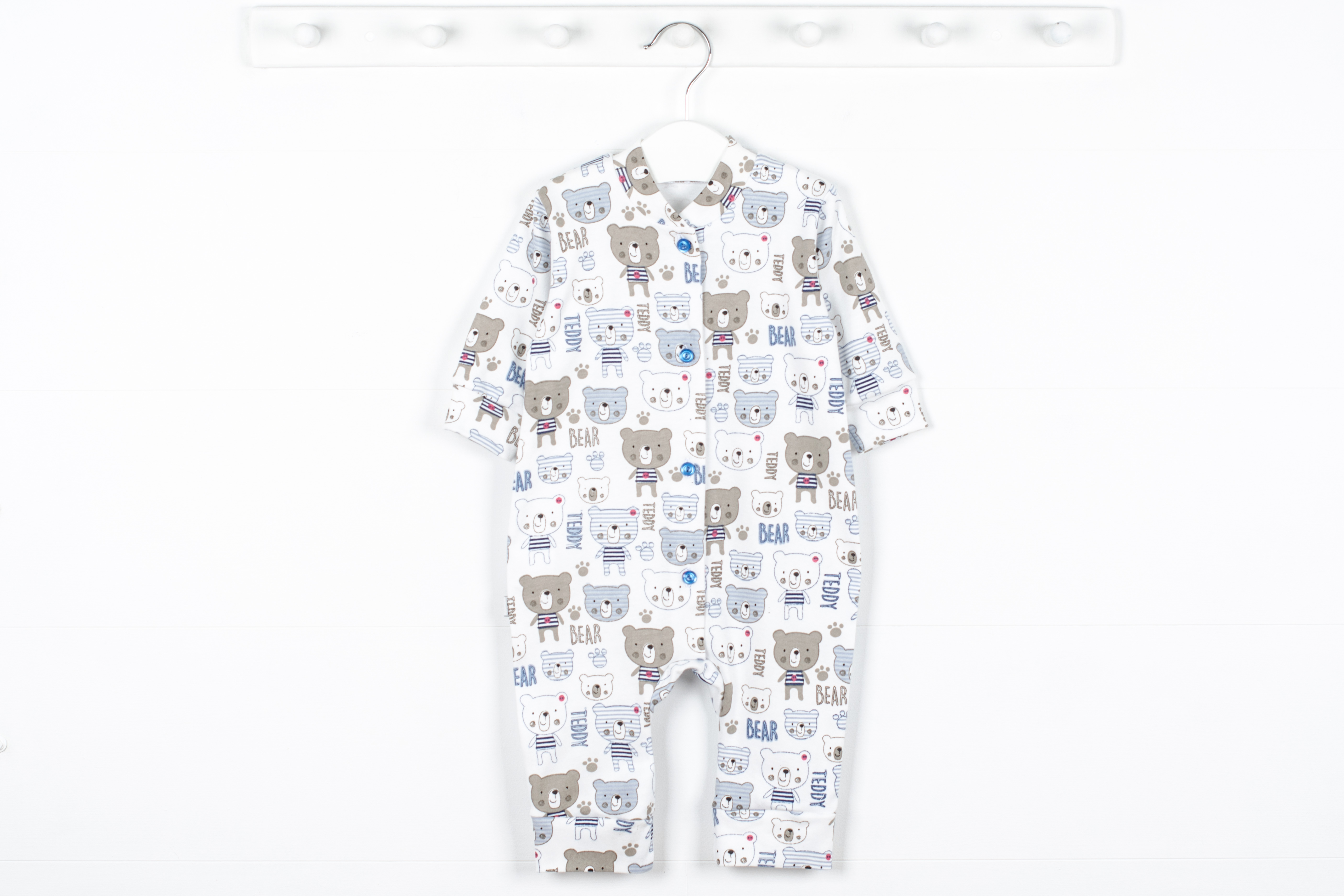 Комбинезон, с длинным рукавом, по переду застежка на пуговицах.