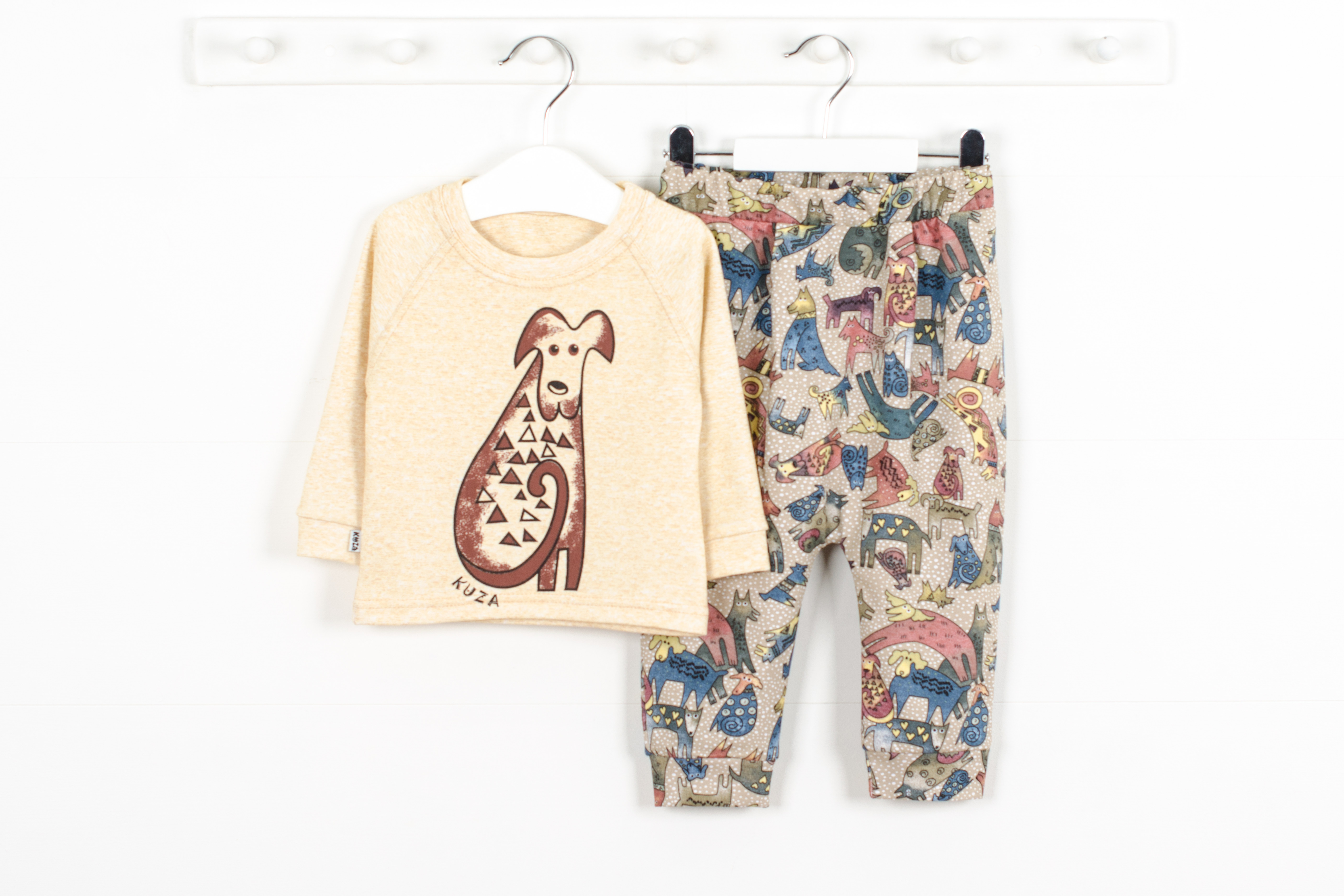 Джемпер с длинным рукавом. По переду принт. Брючки с подворотом. (интерлок)
