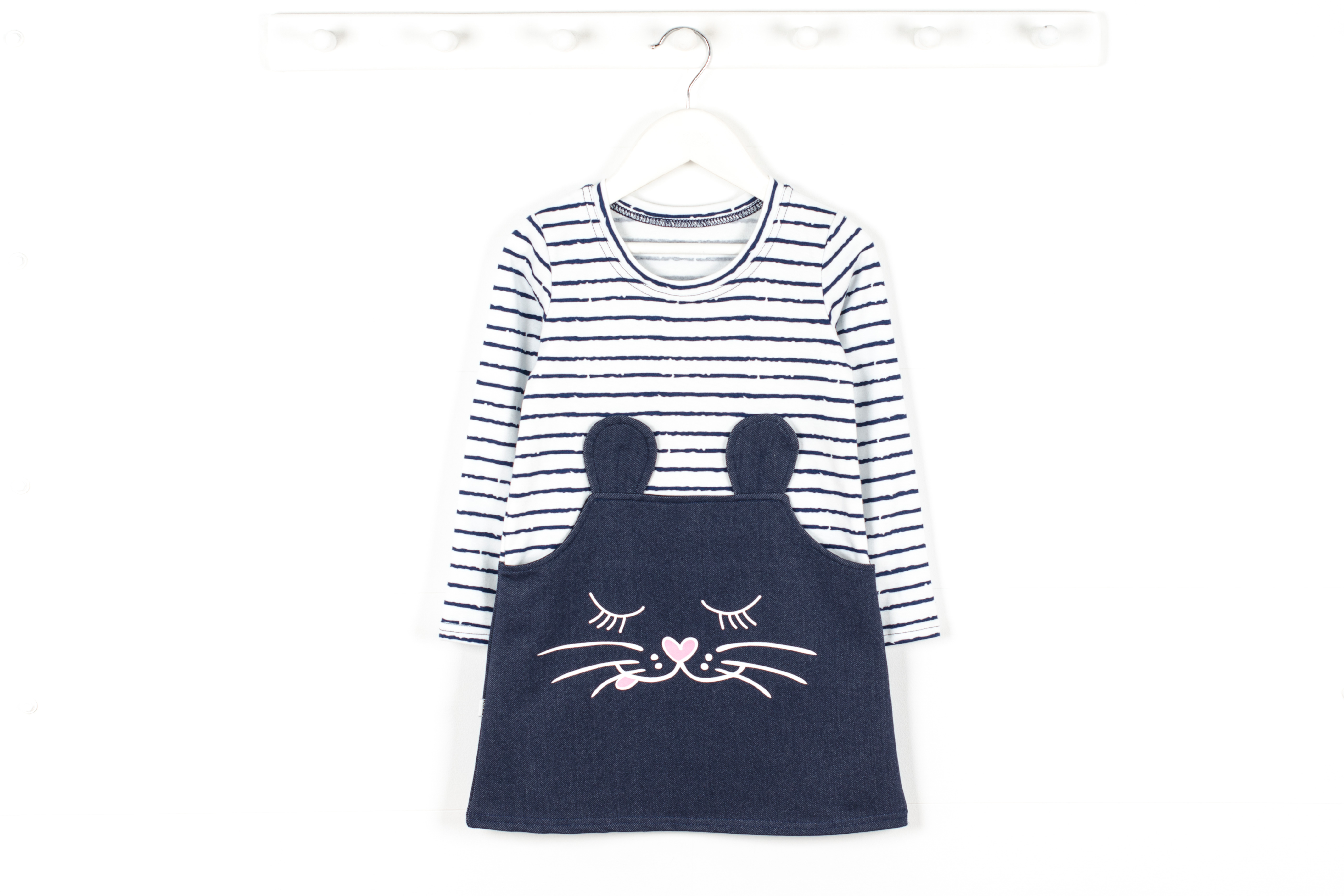 Платье с длинным рукавом. Юбка с карманами, декоративными ушками и забавным принтом.