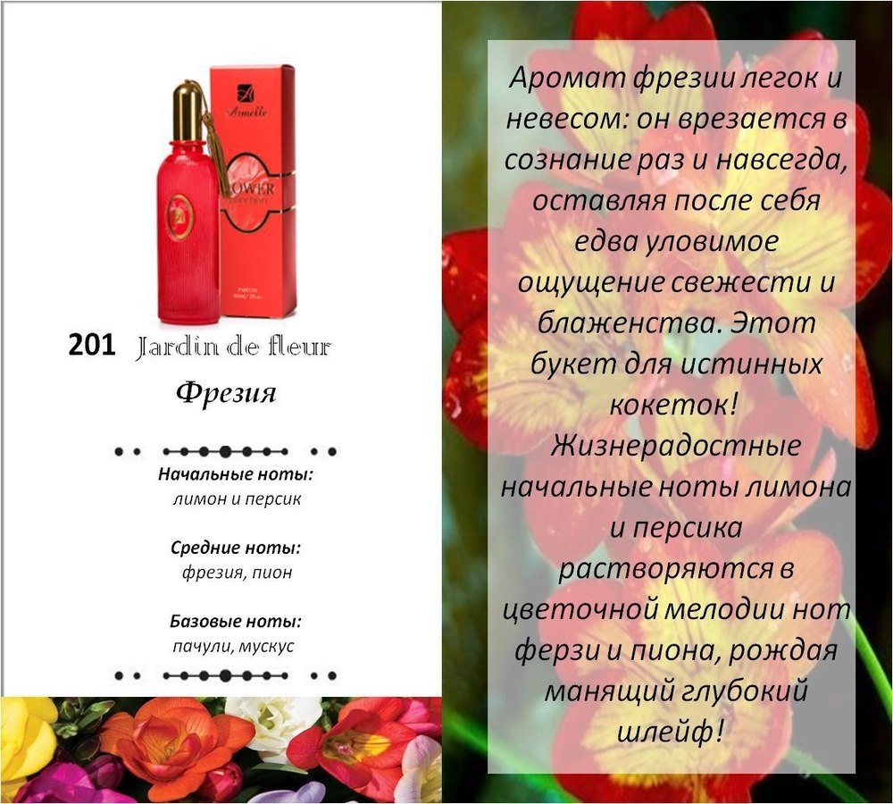 Jardin de fleur No201 (Фрезия) - Аромат фрезии легок и невесом: он врезается в сознание раз и навсегда, оставляя после себя едва уловимое ощущение свежести и блаженства. Этот букет для истинных кокеток!